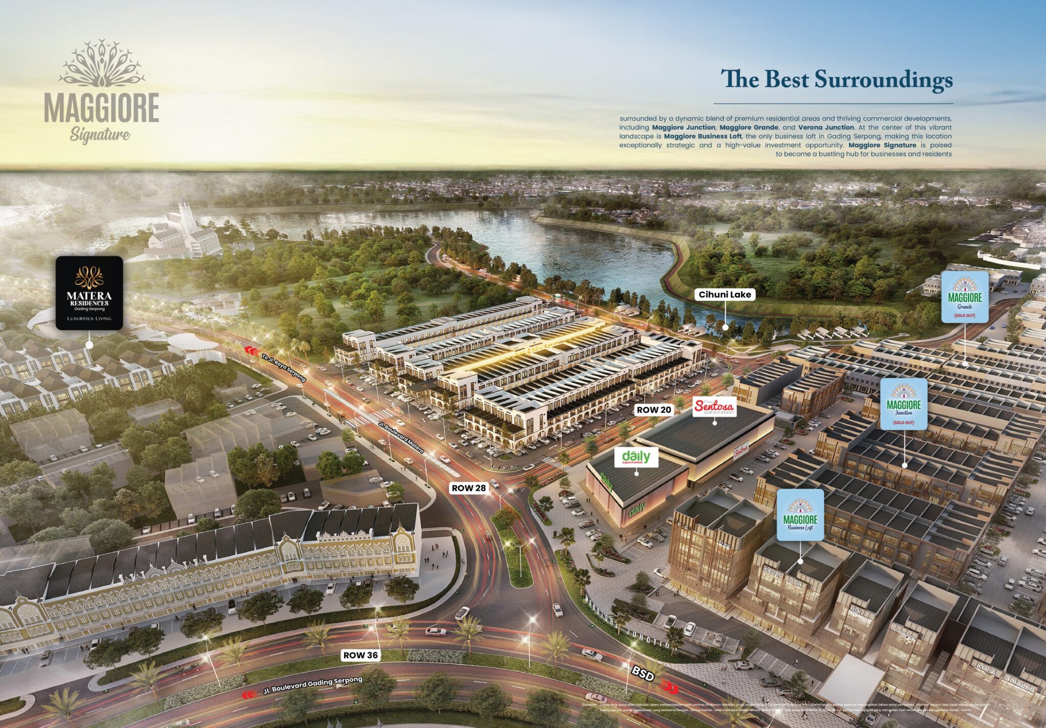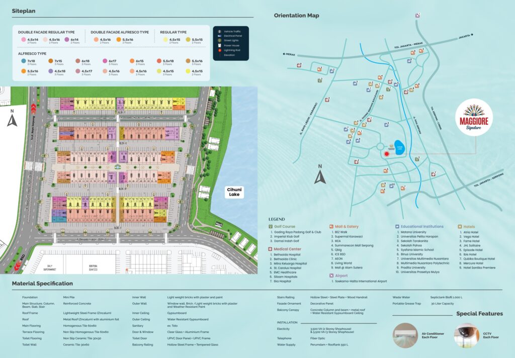 Maggiore Signature adalah ruko 2 lantai bergaya modern di kawasan komersial paling hidup di Gading Serpong, menghadirkan konsep double facade dengan “Street Gallery” ala luar negeri dan pemandangan danau 30 hektar yang memberikan pengalaman bisnis bernuansa alam.